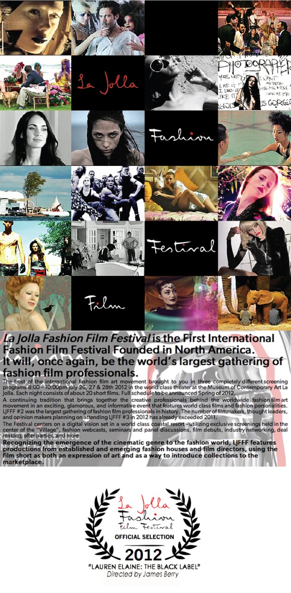 We’re excited to announce that “LAUREN ELAINE: THE BLACK LABEL”, by Director James Berry, has been announced as an official selection for the 3rd Annual International La Jolla Fashion Film Festival – the world’s largest international fashion film festival bringing together the best of fashion films from around the world.