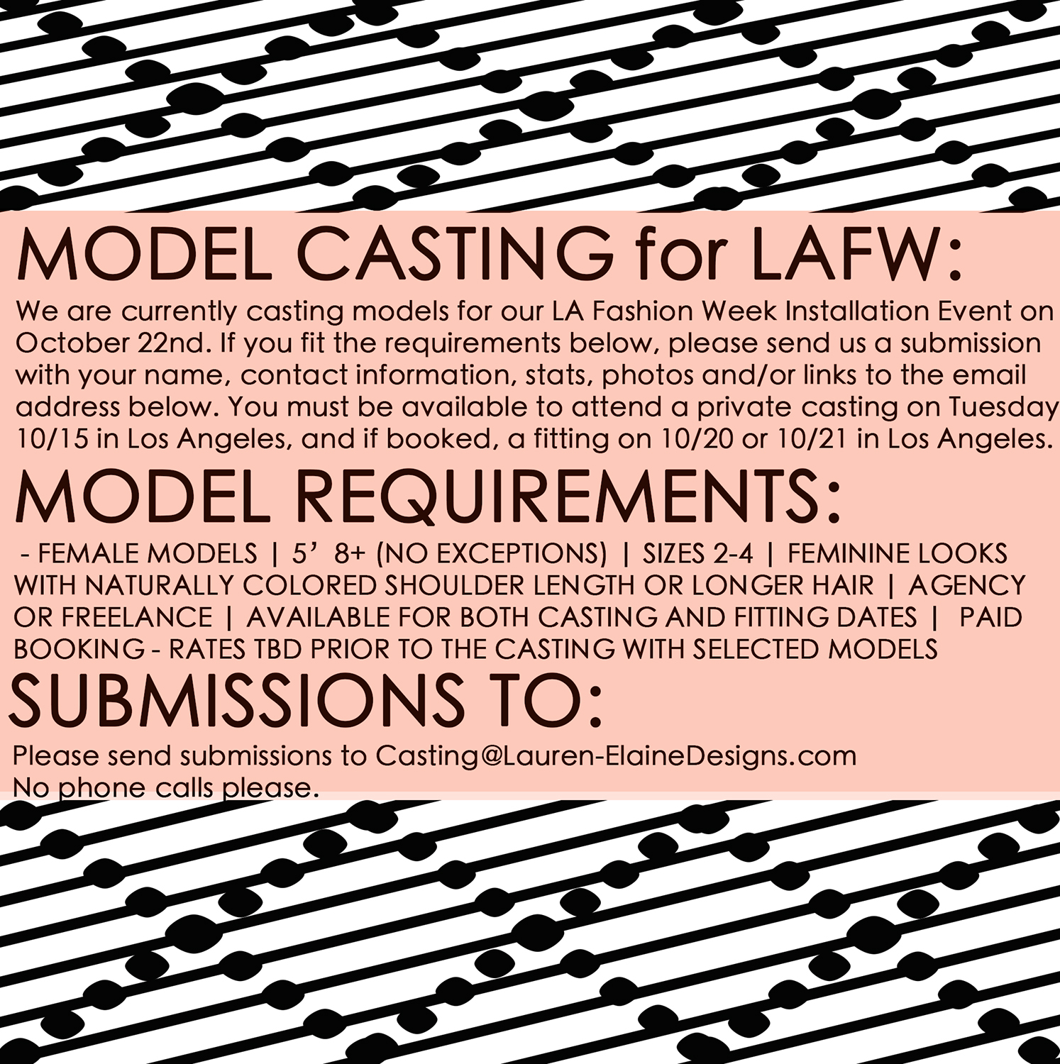 We’re casting for our LA Fashion Week Event on October 22nd!