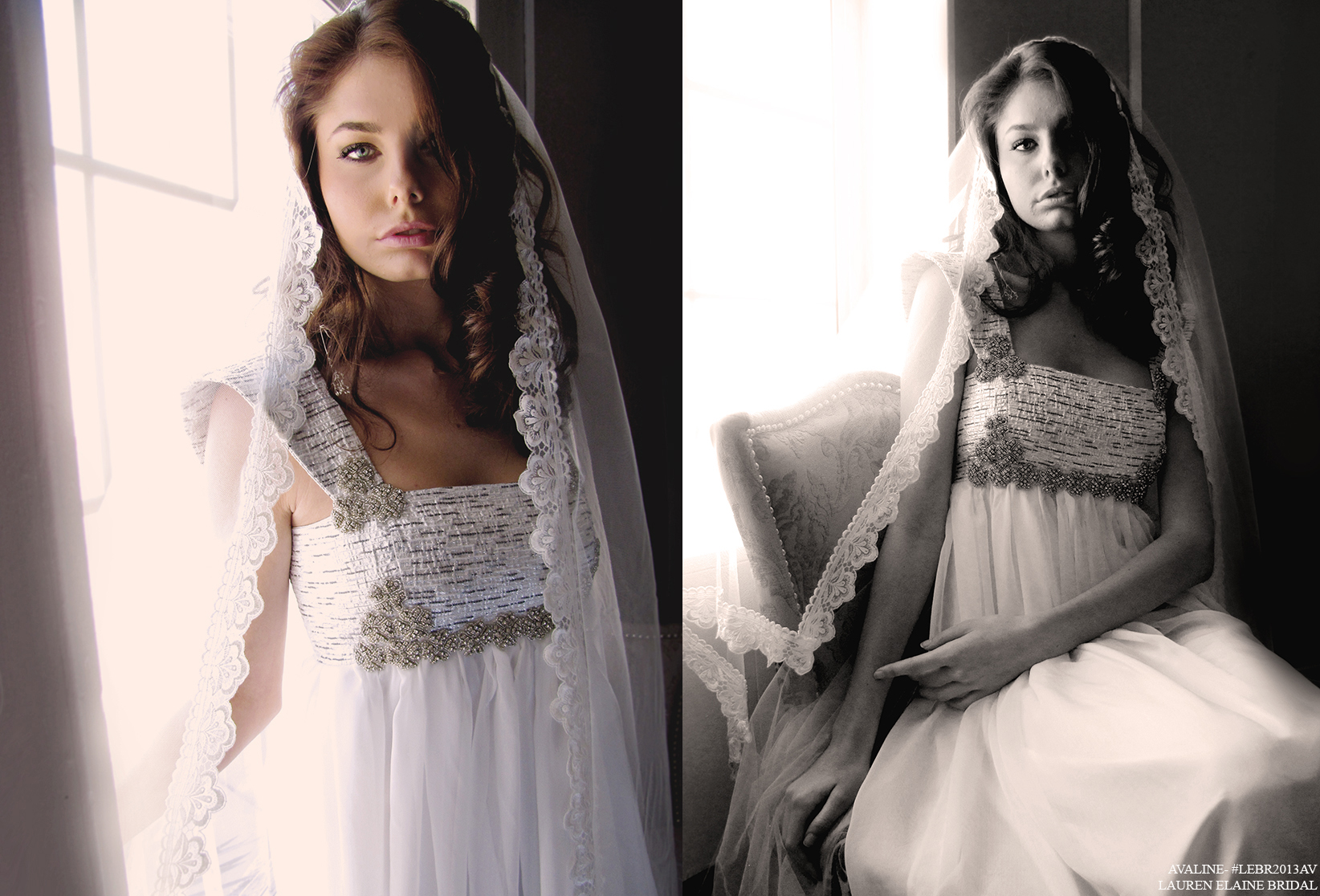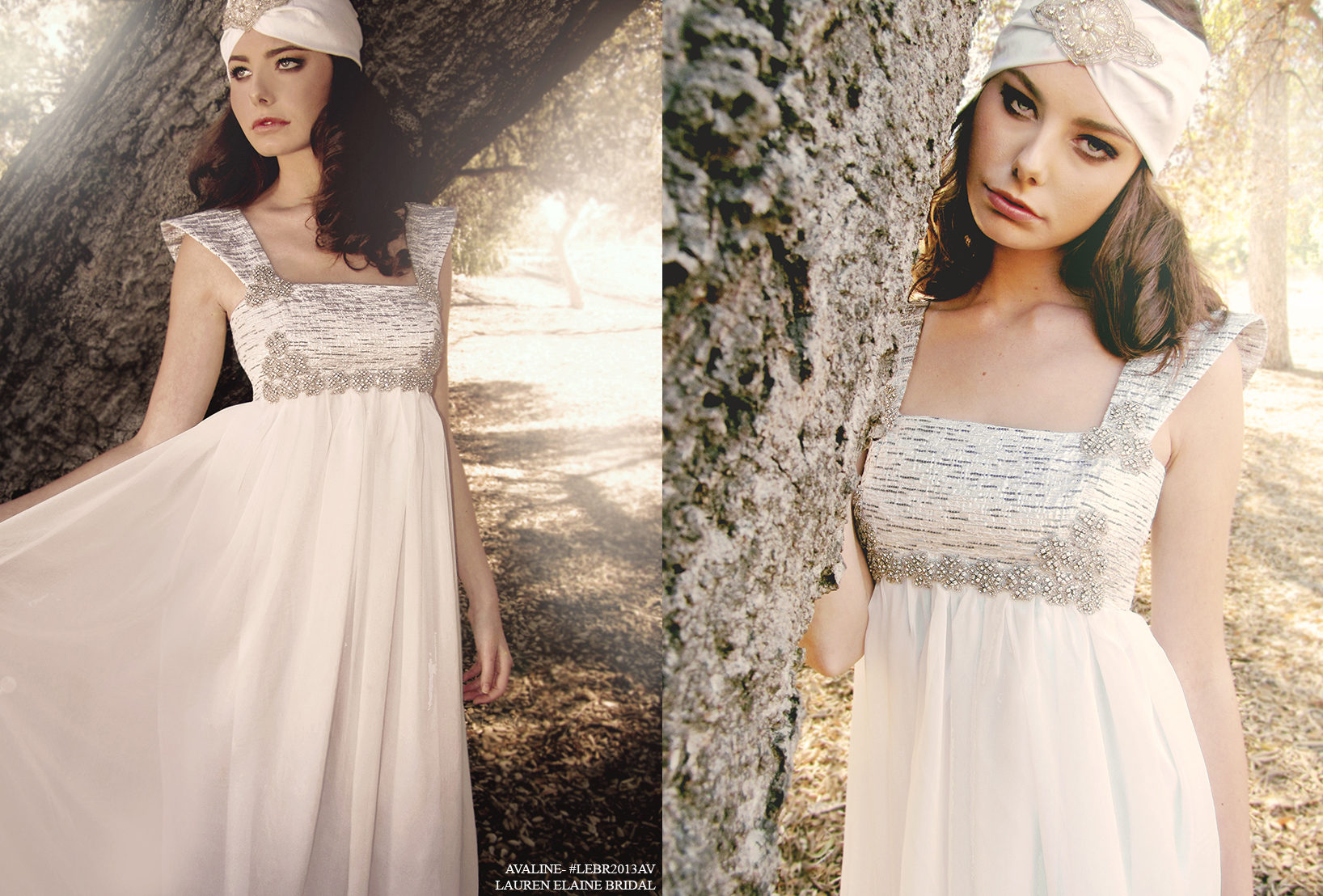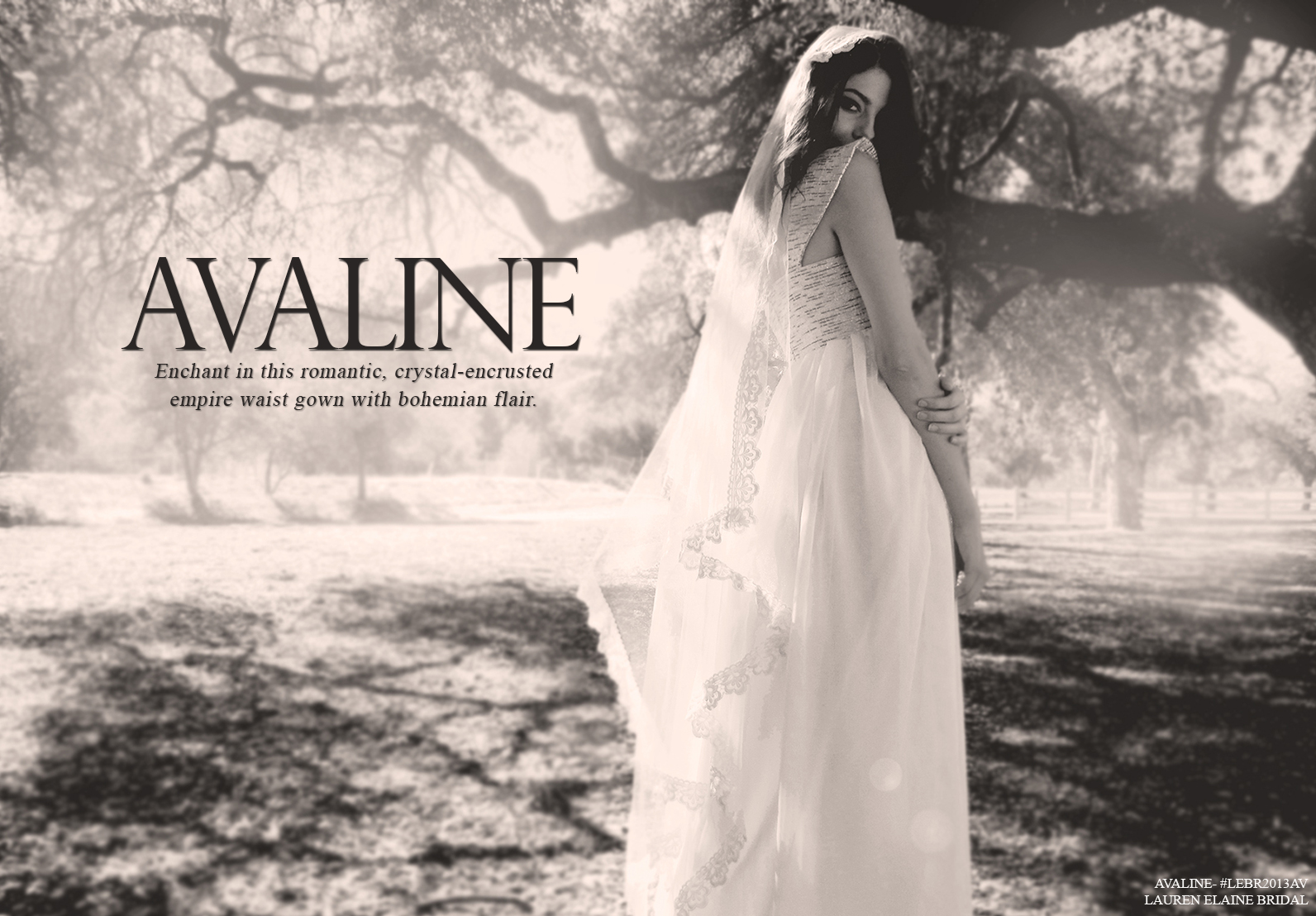 Enchant in this romantic, crystal-encrusted empire waist gown with bohemian flair. Shop the “Avaline” and download a copy of the mini-lookbook here!