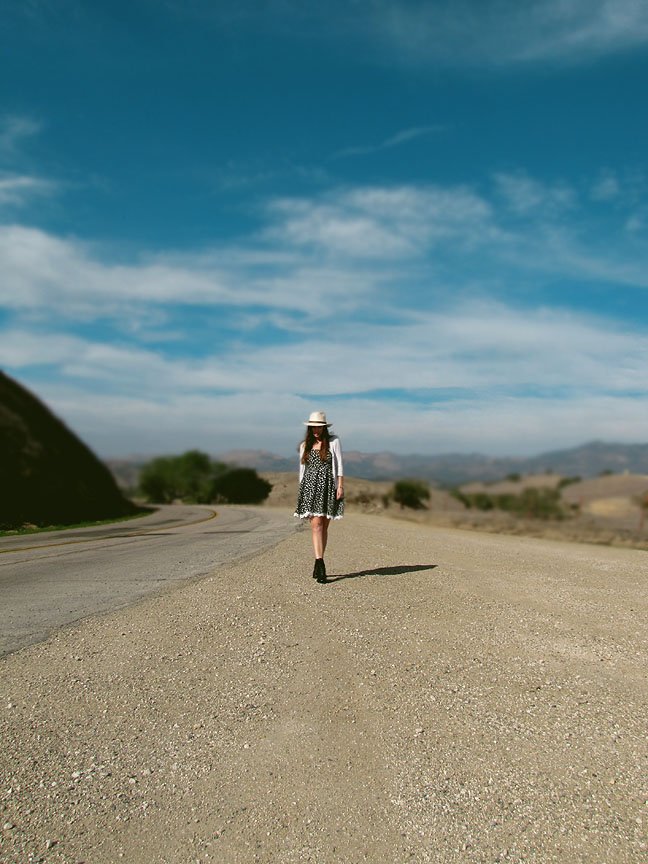 Last week, I posted about my recent trip to beautiful Santa Ynez. While I started off in Los Olivos, I saved the best for the last. And in my opinion, the “best” is definitely the Foxen Canyon Wine Trail. If you enjoy gorgeous views, great wine, and wide open spaces, it’s a must-do. In the spirit of the romantic country scenery, I paired the flirty “Sadie” dress from ‘Laine by Lauren Elaine’ collection, with my favorite cowboy hat. To take the western edge off, I finished the look off with a pair of combat boots — the perfect choice for stomping grapes, or just stomping around vineyards:)