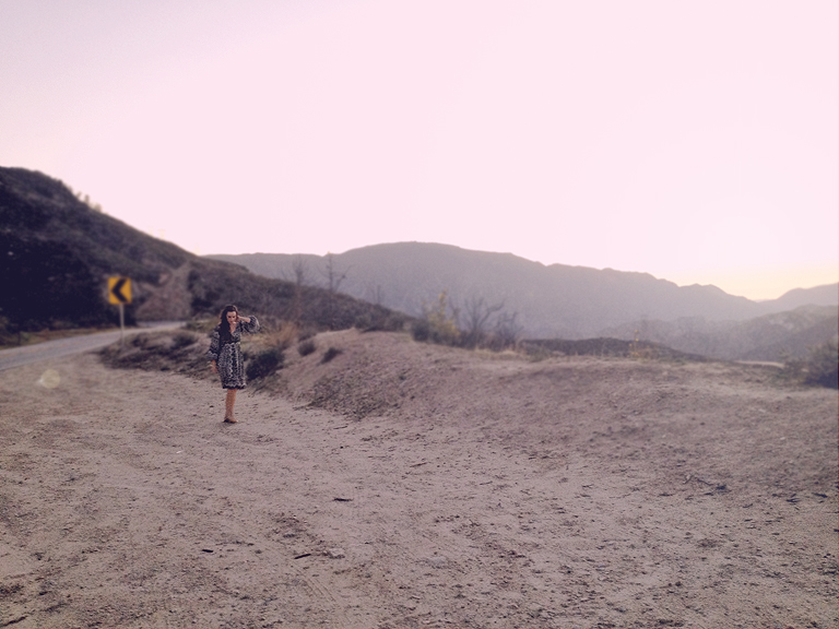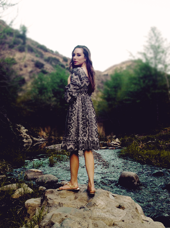 Nothing boosts creativity and inspires new ideas more than a change of scenery. Seeing new things and exploring new places inspires new ways of thinking and looking at the world. Sometimes, amidst all the craziness of work and life, you just need to take a break, and get out! Living in LA, there’s no shortage of beautiful places to visit– and in just a day. No long vacation required. So this past Sunday, I decided to take a drive through the Angeles National Forest. Although I’ve lived in LA for nearly 8 years, I’ve only passed through bits and parts of the huge mountain range a few times (it’s 1,024.0 sq miles!) So a couple of hour before sunset, I set off for a ‘Sunday Safari’ — scouting new hiking trails, picking wildflowers, and taking in one epic sunset. On my adventure, I wore the new “Kenya” dress- fitting with it’s tribal safari print, and made of super comfortable rayon. Shop KENYA here!