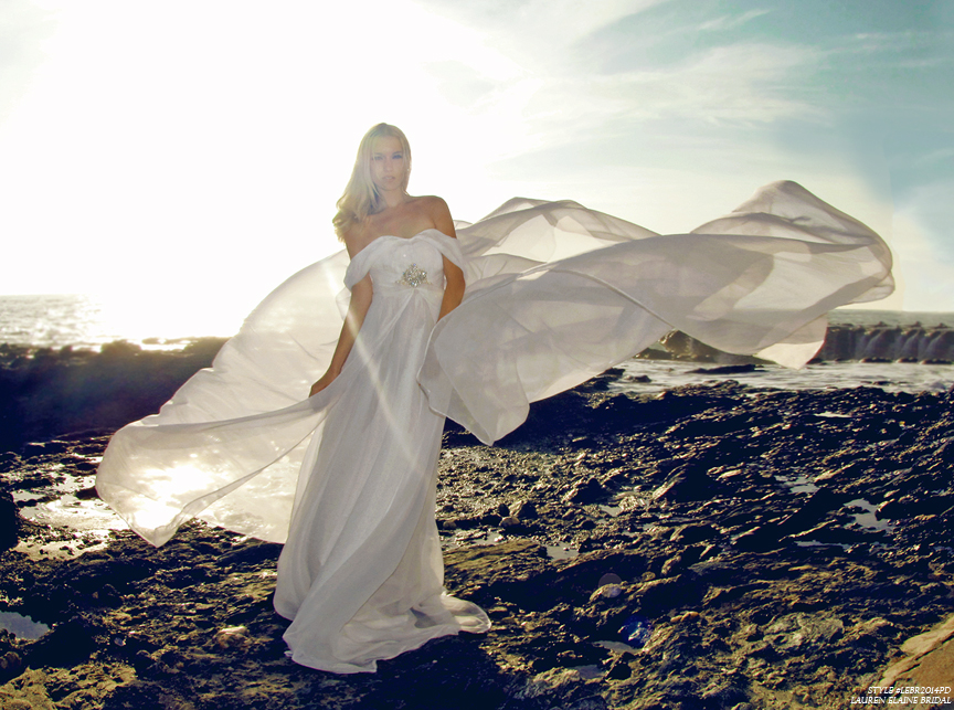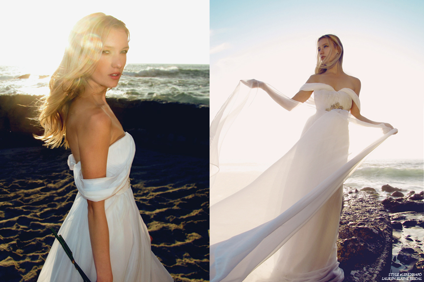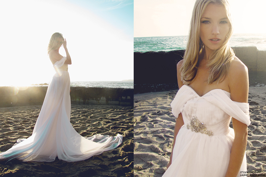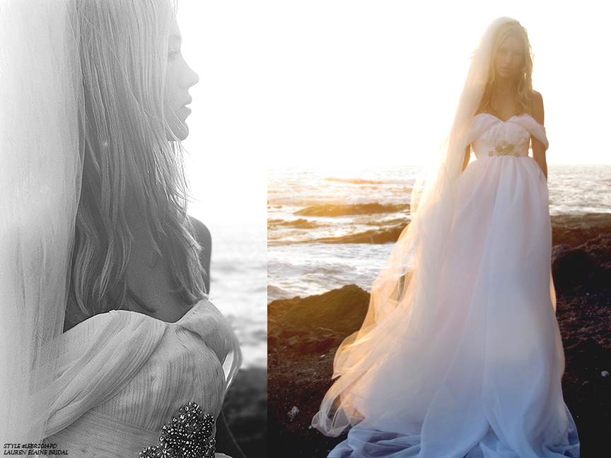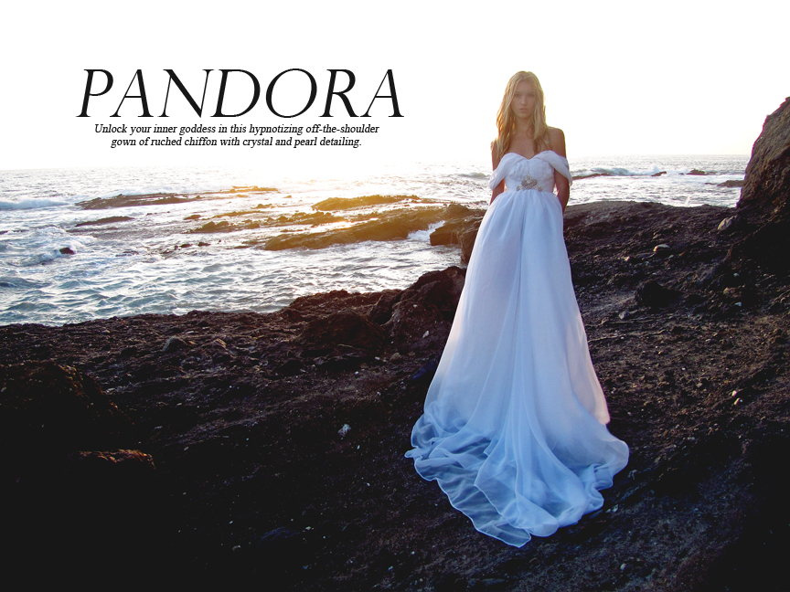 Unlock your inner goddess in this hypnotizing off-the-shoulder gown of ruched chiffon with crystal and pearl detailing. SHOP PANDORA here.