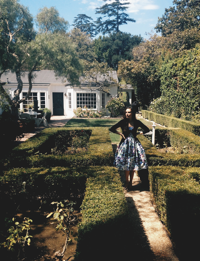 While it may technically be Fall, in Southern California it still feels very much like summer. And although I’m desperate to break out the plaids, faux fur, and houndstooth, I couldn’t help but gravitate towards florals when picking a dress for my cousin’s recent wedding brunch in Montecito, CA. With temps in the 80s, the jewel-toned “Petunia” dress from LAINE by Lauren Elaine not only felt appropriate for the event, but also for exploring the picturesque 1920s historical home that accommodated my family for the wedding weekend.