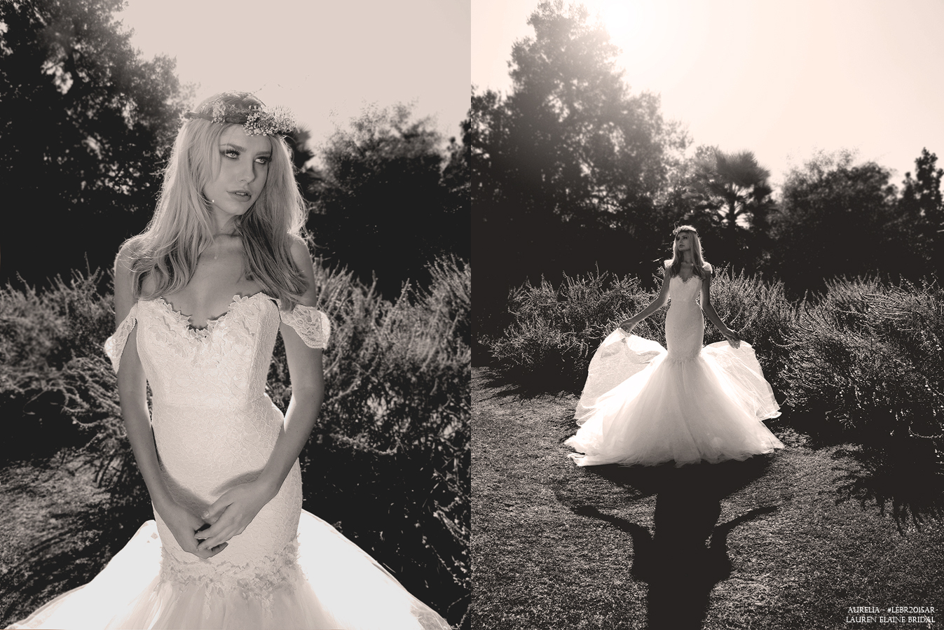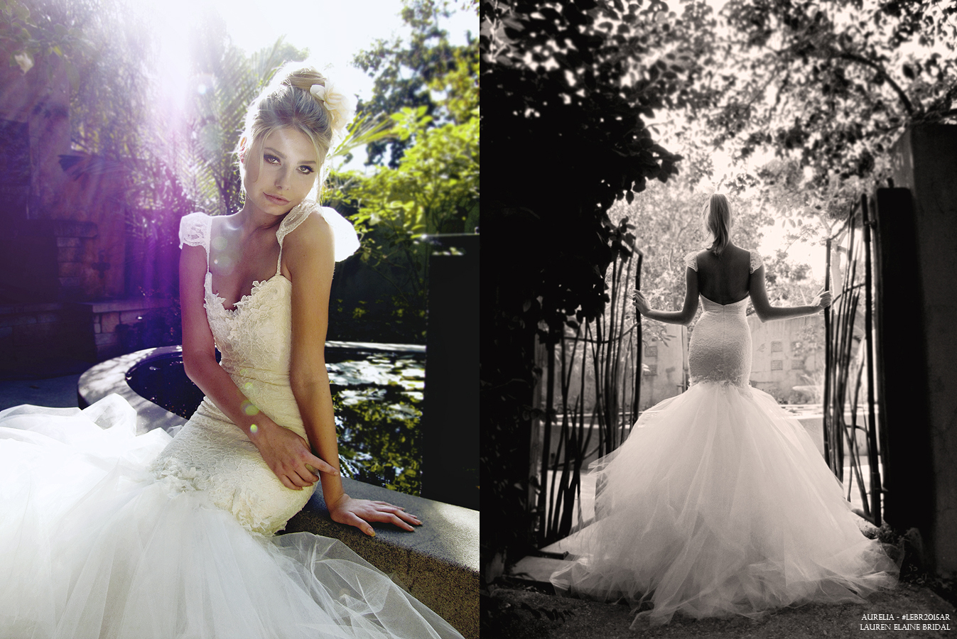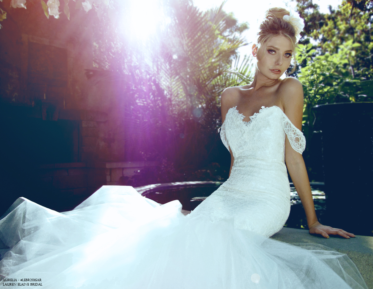 Entrance with a heavenly vision of tulle and French lace in the dramatic mermaid-silhouetted “Aurelia” gown from Lauren Elaine Bridal. SHOP AURELIA here.