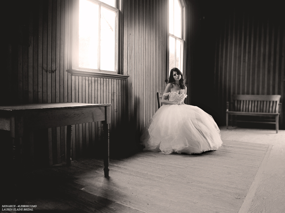 Flourish in the regal beauty of textured floral lace and cascading feathered tulle of the Monarch gown by Lauren Elaine Bridal. SHOP MONARCH here.