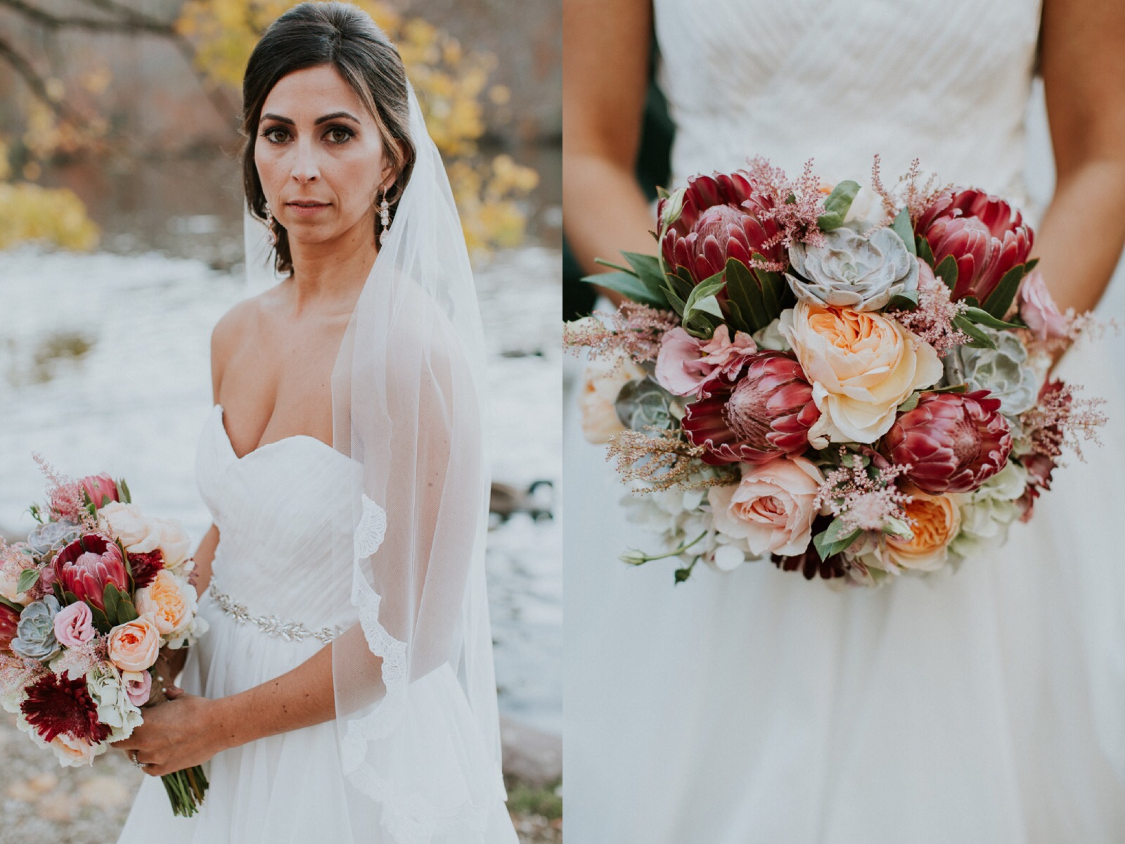Fall is my favorite time of year. So, needless to say, when I first laid eyes on these gorgeous images by Lauren Louise Photography, featuring bride Taylor in her Cambria gown, I was blown away. Rustic yet modernly classic, this golden look at Taylor and Bruce’s nuptials at the Three Rivers Inn in Long Island New York captures the spirit of Autumn, and their love, so wonderfully. Pairing our chiffon Cambria gown with the rich colors and textures of this romantic East Coast backdrop is refreshing and unique, and truly epitomizes the crisp magic of Fall. Vendors: Jewels: Crystal Avenues | Hair Sylist: Jessica Ciofrone | Floral Design: Roots Flowers + Treasures