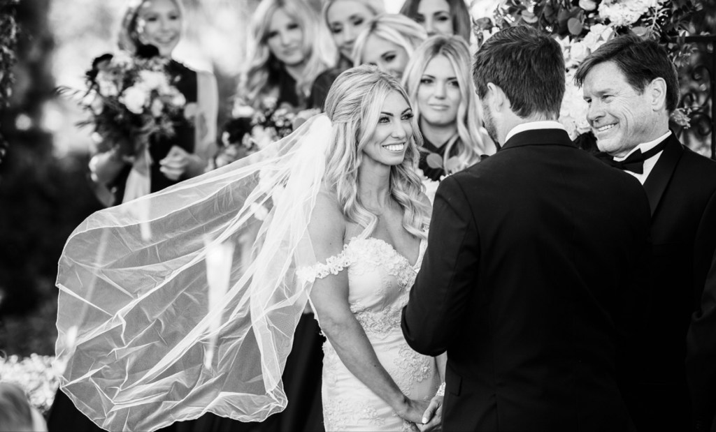 Set against an incredible ocean view backdrop, with shades of pastels and pops of reds, picture-perfect couple Alex and Matt tied the knot at the Thursday Club in picture-perfect San Diego, CA in January. A mix of sophisticated glamour and old world charm, this wedding exudes style. Regal and romantic, and wearing a custom “Capella” with soft hues of blush and ivory, paired with her fabulous ‘something blue’ Louboutins, Bride Alex looks straight-up magazine worthy in her wedding day look. Coordinated by Kimberly Connors Events, and beautifully photographed by Walter Wilson, here’s a look at this stunning seaside celebration! (Full vendor credits below).