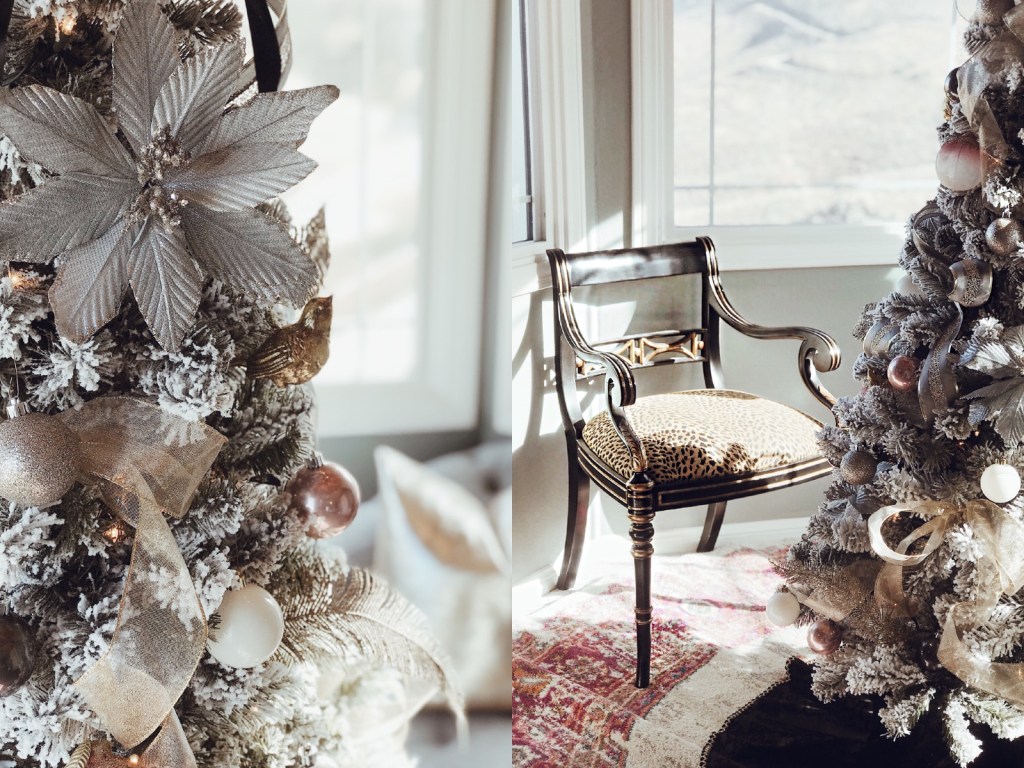 Merry Christmas Eve! Today I’m sharing a full look at our holiday home decor for 2018 – we’ve added some new additions since last year (and some previously empty rooms now have furniture!) I love decorating for the holidays, and each year I hope to add something new – whether it’s a new themed tree, new wreathes, or maybe even lights on the exterior (goals for next year?) My favorite addition this year: definitely our flocked trees from King of Christmas! Here’s a tour!